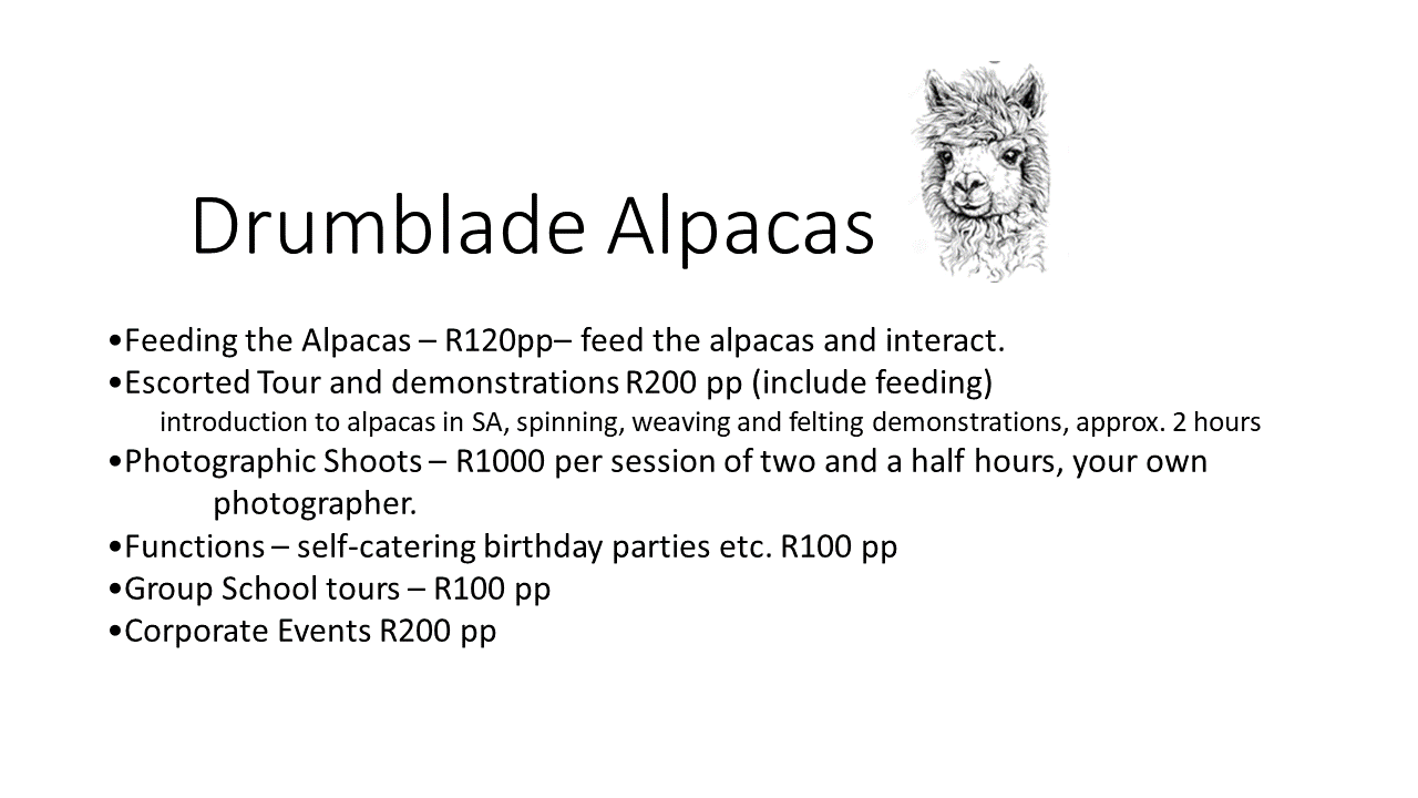 Have an escorted tour of the farm meeting all the alpacas – have their colours, shapes and sizes explained to you!